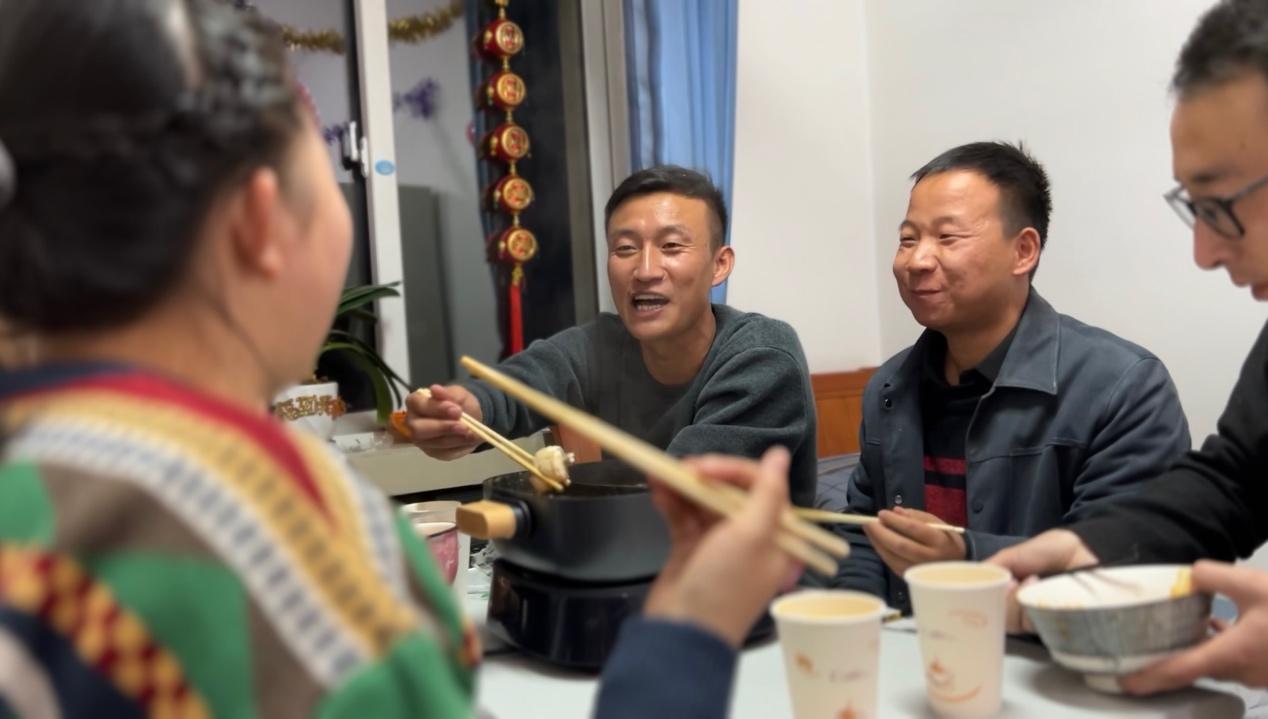 火锅蒸腾,喜庆的兔年窗花映得小屋年味儿十足。爱人、兄弟,笑闹着互相祝福;每一双亮晶晶的眼睛里,还映着或近或远的牵挂,这一刻,尤其清晰。