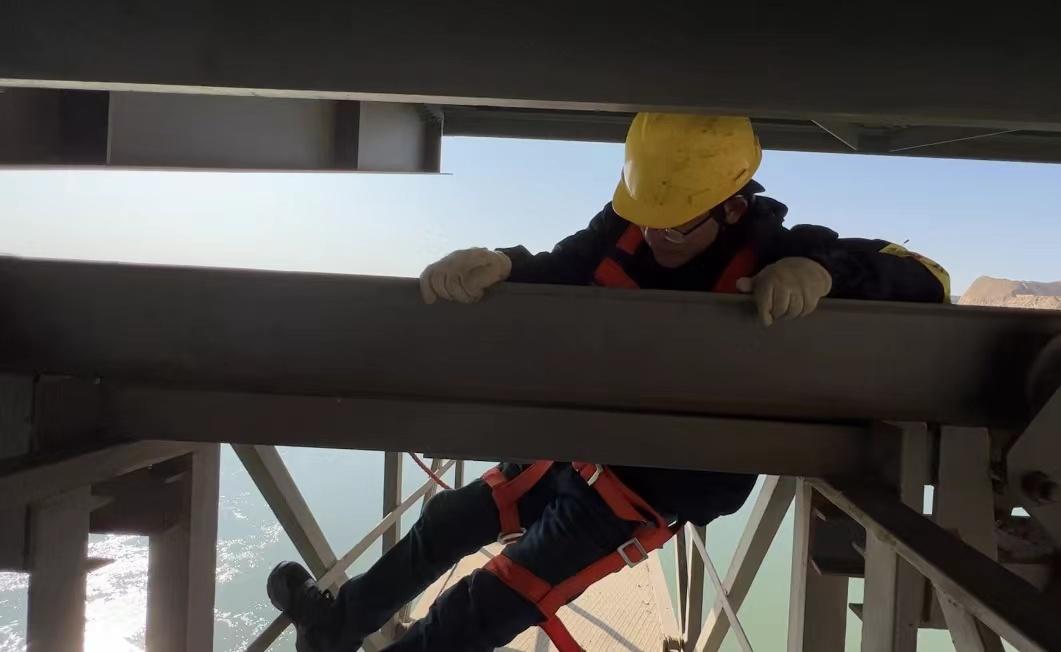 高空作业时,立足的钢槽仅能容得下双脚。风声猎猎、心跳如鼓,刘昕说,他第一次上来时,两腿发软,“最大的难度还是克服自己内心的恐惧”。