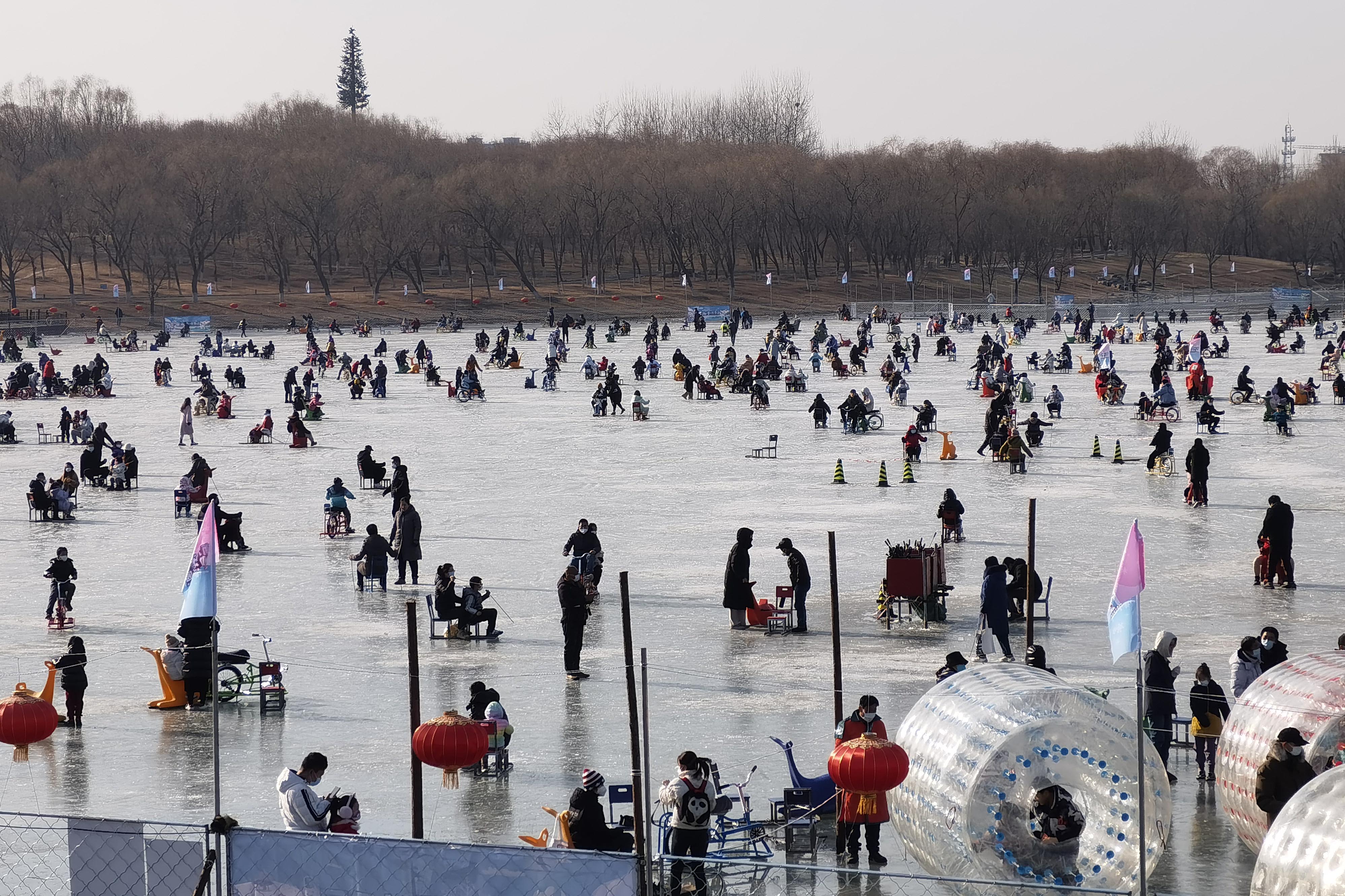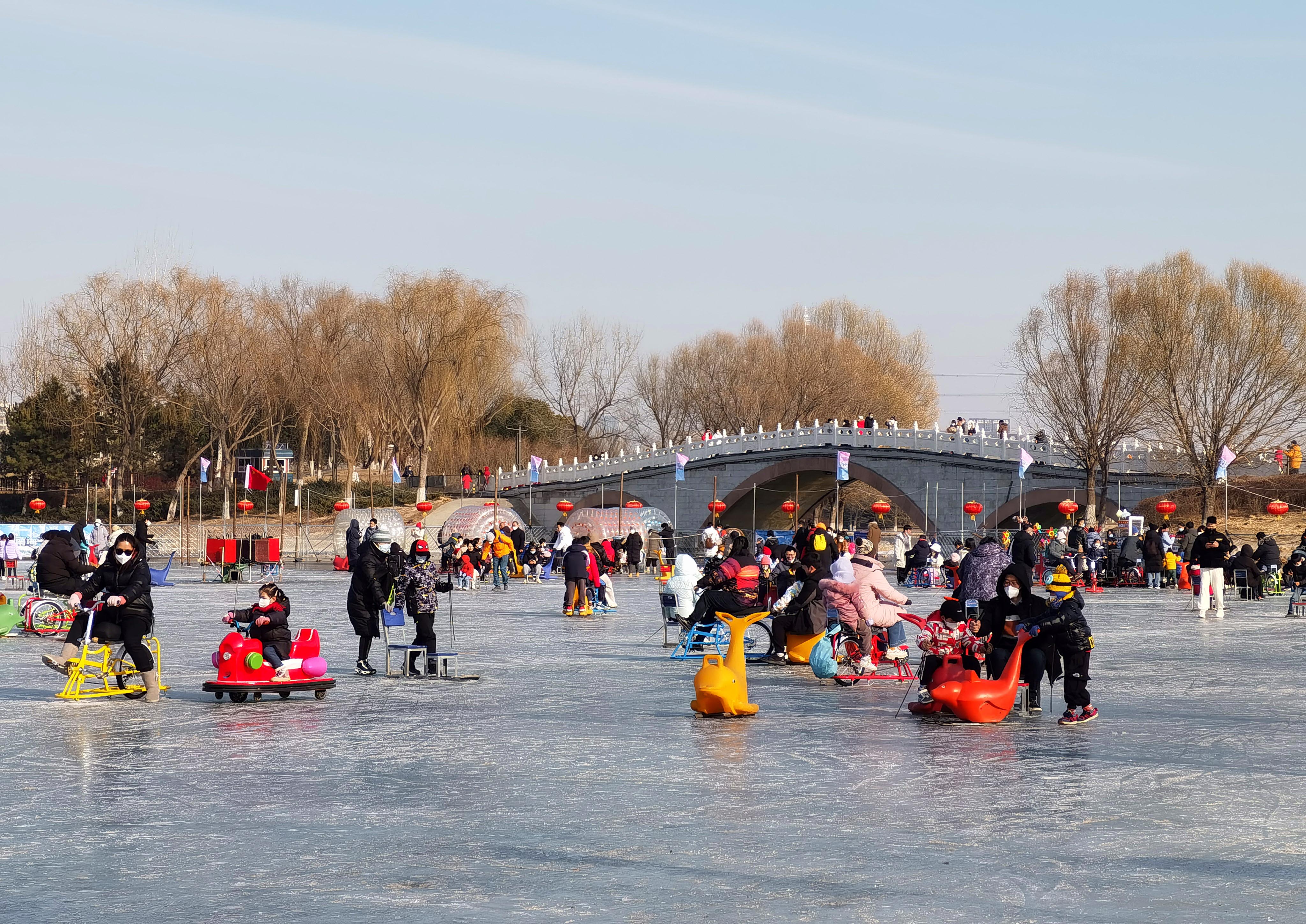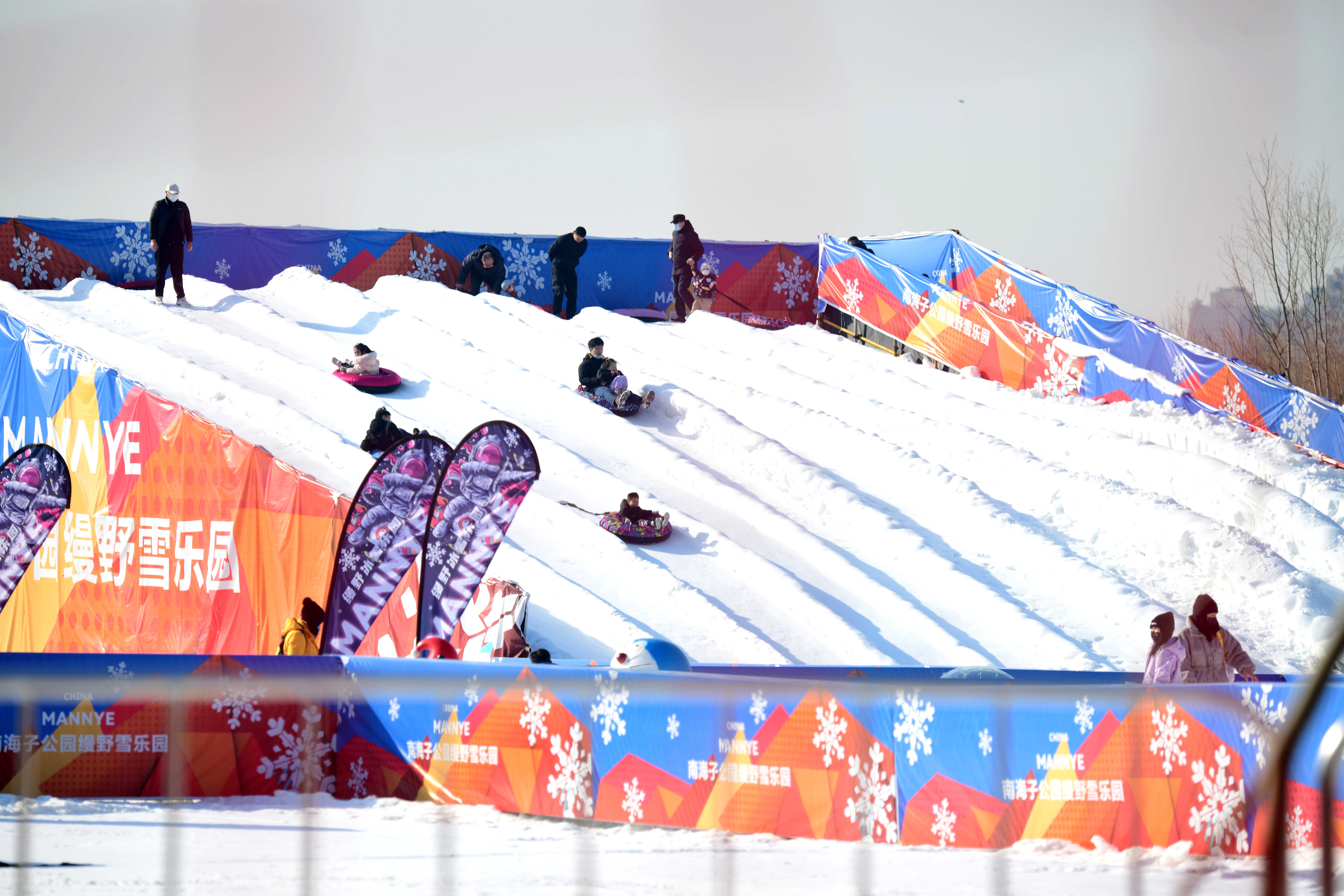 近日,南海子公园启动了冰雪嘉年华,公园内相继开放了“冰乐园”和“雪乐园”,其中“冰乐园”利用公园里自然冰冻的湖面,开放了总面积达6万多平方米的冰场供市民游玩;“雪乐园”位于公园二期,面积近两万平方米。冰雪乐园广阔的面积,丰富的游乐设施,让附近居民在家门口实现了“冰雪自由”。
