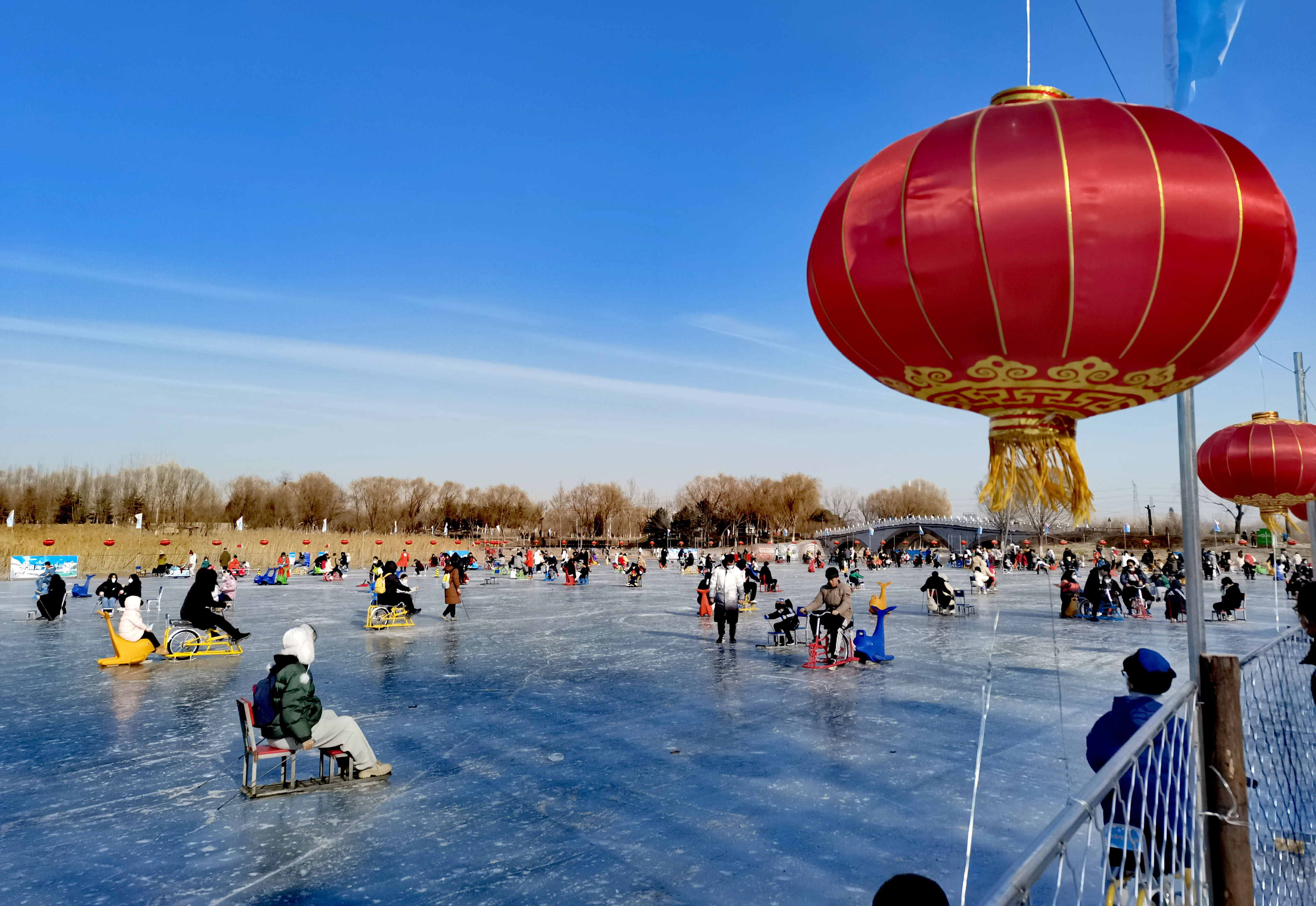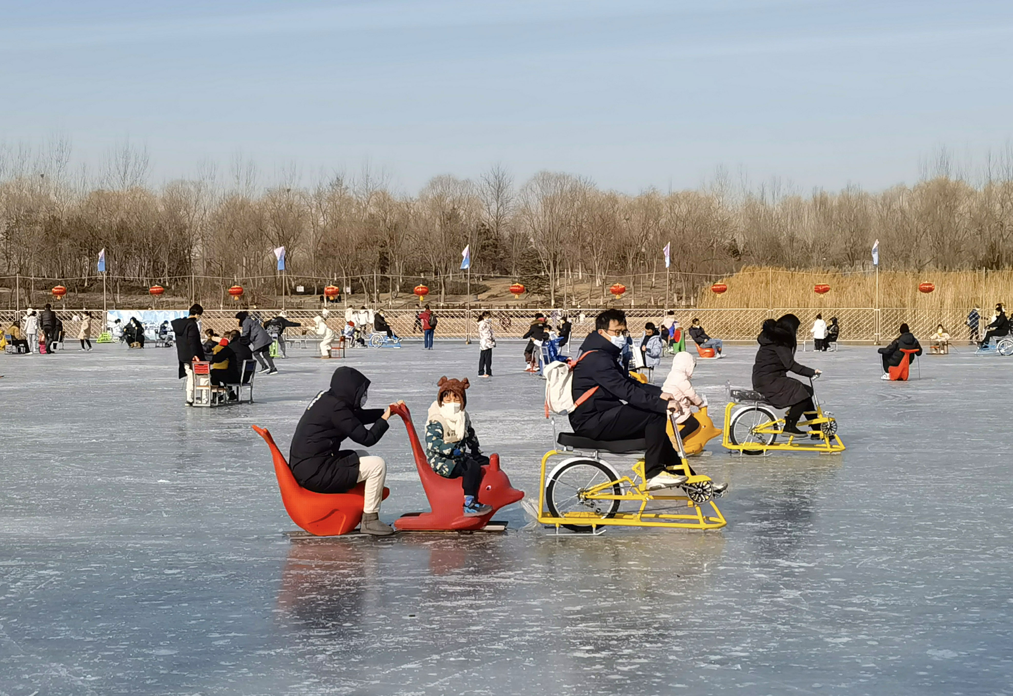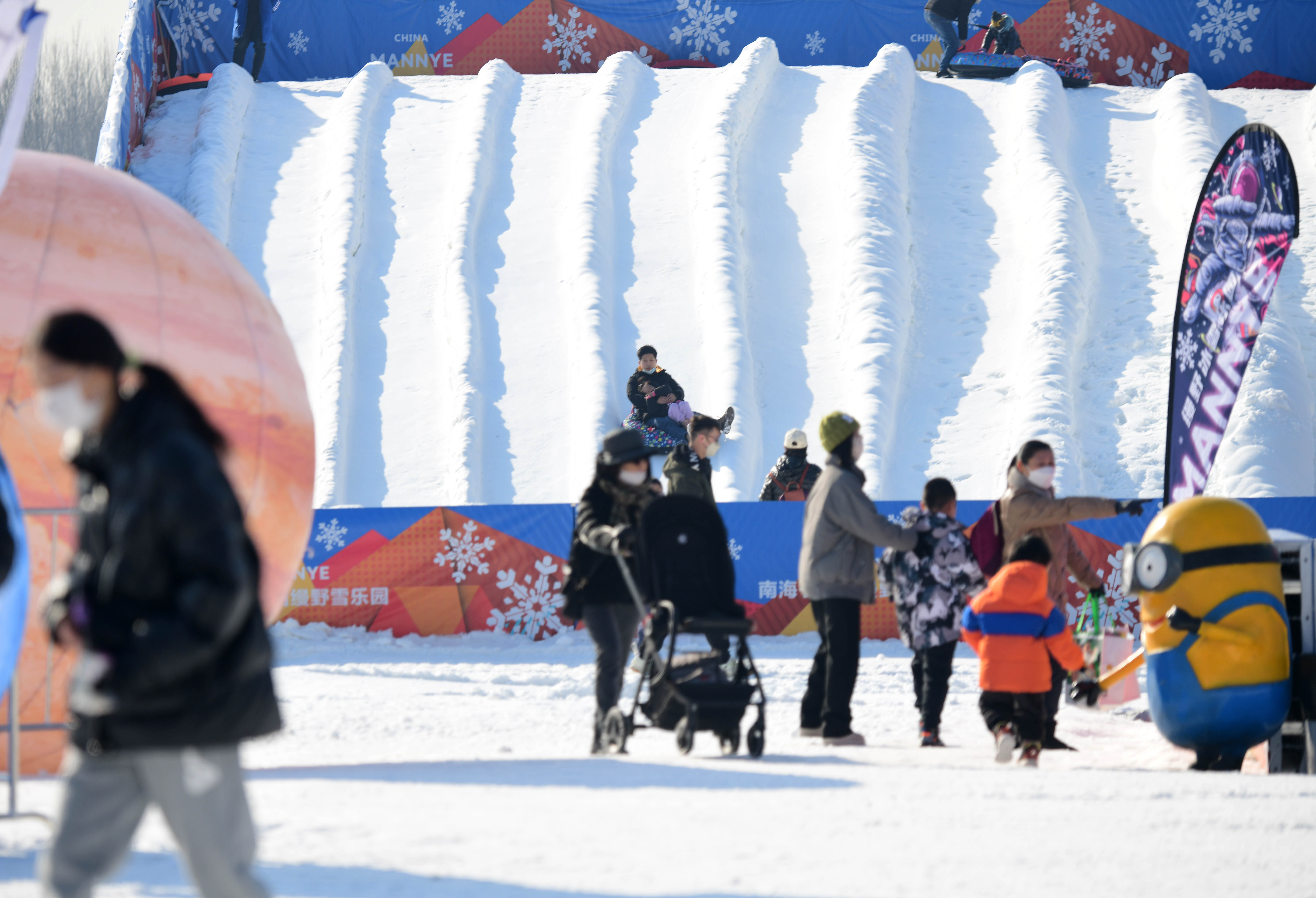 近日,南海子公园启动了冰雪嘉年华,公园内相继开放了“冰乐园”和“雪乐园”,其中“冰乐园”利用公园里自然冰冻的湖面,开放了总面积达6万多平方米的冰场供市民游玩;“雪乐园”位于公园二期,面积近两万平方米。冰雪乐园广阔的面积,丰富的游乐设施,让附近居民在家门口实现了“冰雪自由”。