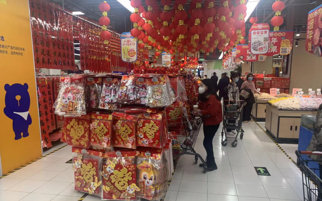 春节的脚步越来越近,大街小巷的年味儿也越来越浓。记者在多家超市和市场看到,写满祝福的春联、喜庆的“福”字、俏皮的兔宝宝玩偶等新春饰品成为了热销的年货。