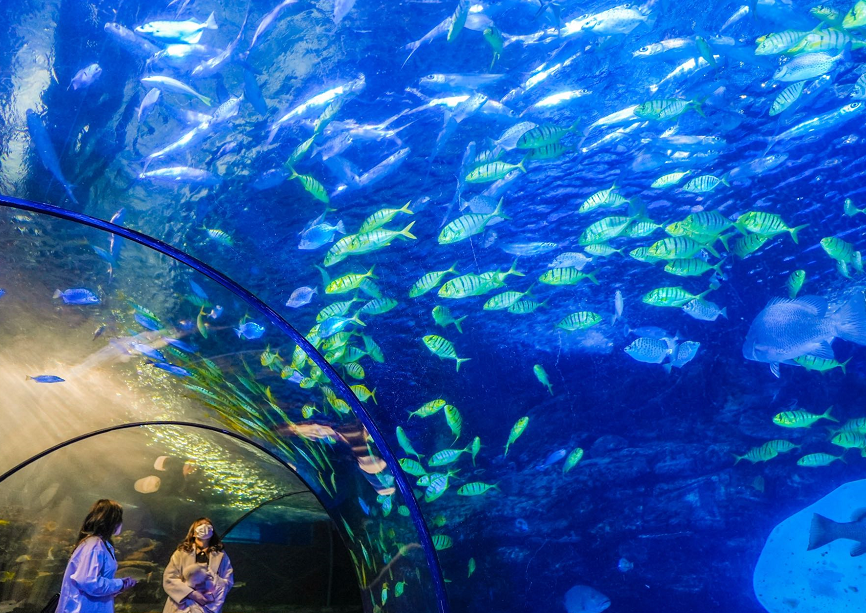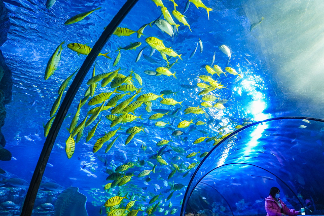 今天,在太平洋海底世界博览馆,春节期间将推出的“水下舞龙贺新春”表演发布,吸引不少游客先睹为快。从大年初一到大年初六,每天演出两场。