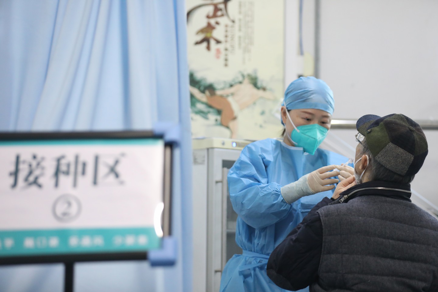 2022年12月16日,北京朝阳,东风地区新冠疫苗接种点内,市民正在接种鼻喷式疫苗。 新京报记者 王飞 摄