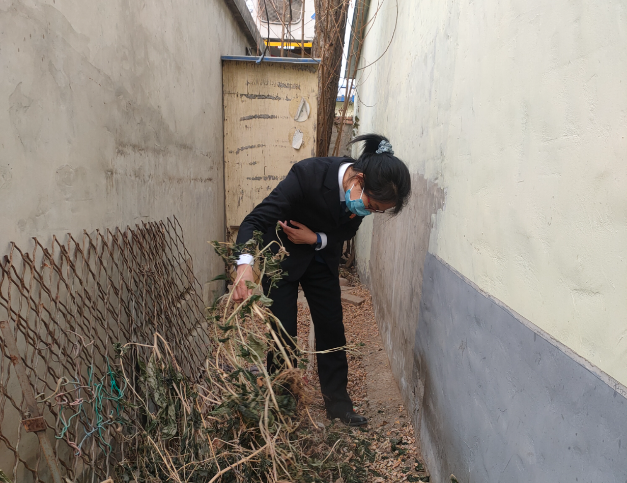 见双方态度有所缓和,而且同意调解,但都不愿意清理打扫,刘法官与原告的律师,借来一把铁锨,一个跃步跨过栅栏,将空地上杂物清理完毕。