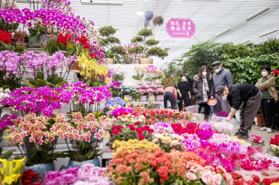 “每年过年前都会来买上几盆年宵花,一般会买上两盆大一点的兰花,或是组合盆栽送给长辈,再买上几盆小一点的盆栽或者鲜花花束,放在自己家里增添一下节日氛围,这样很有过年的仪式感。”趁着周末前来选购年宵花的市民刘女士说,家里摆上两盆盛开的鲜花,浓郁的年味仿佛扑面而来。