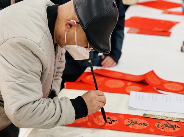 “贴春联、‘福’字是过年必不可少的环节,家里贴上书法老师们手写的‘福’字和春联,比外面买得好多了,这寓意更好了,‘年味儿’也更浓了。”居民栾丽丽笑着接过刚刚写好的“福”字,开心地收好。