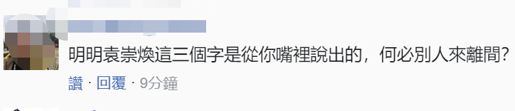 对于苏贞昌所谓的“离间说”,有岛内网友问:“明明袁崇焕这三个字是从你嘴里说出的,何必别人来离间?”↓