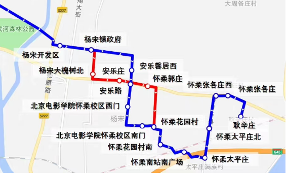 中途取消站点:“杨宋大槐树北”“安乐庄”“怀柔郭庄”站。(如下图红线处↓)