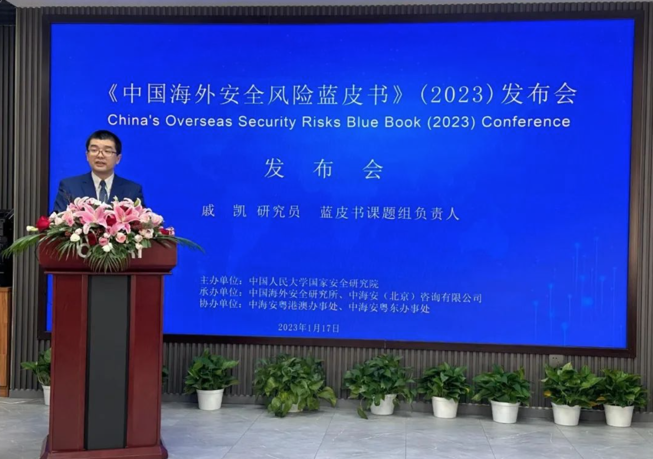 1月17日下午,《中国海外安全风险蓝皮书(2023)》发布会在京举行,蓝皮书综合展望了2023年中国海外安全风险 ,总结了十大值得高度关注的热点问题。