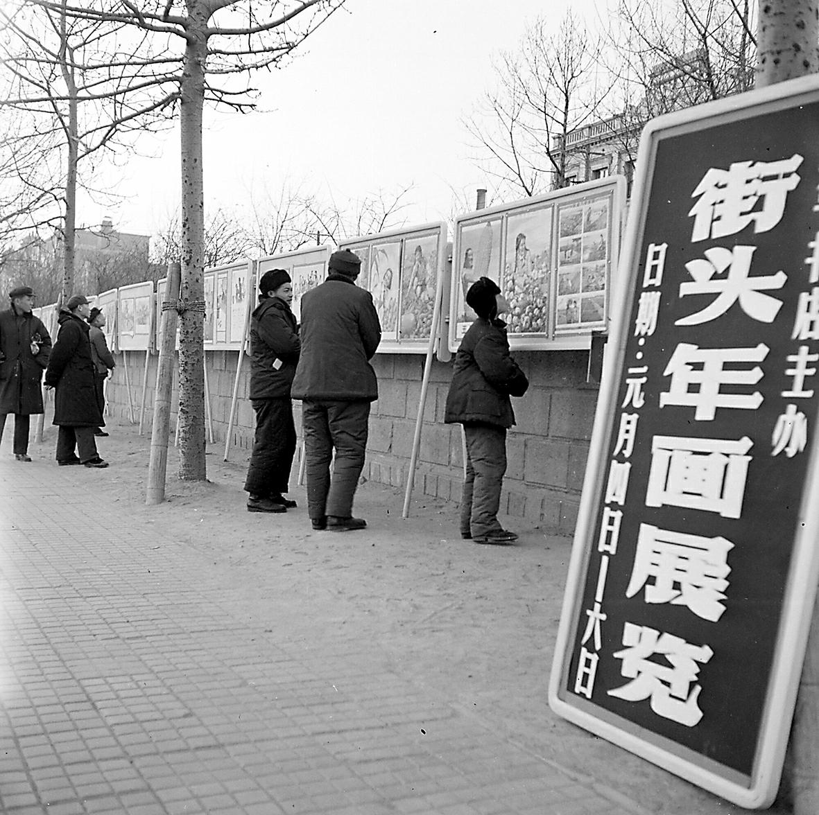 1960年1月1日,王府井的街头年画展览吸引市民驻足。 于文涛摄