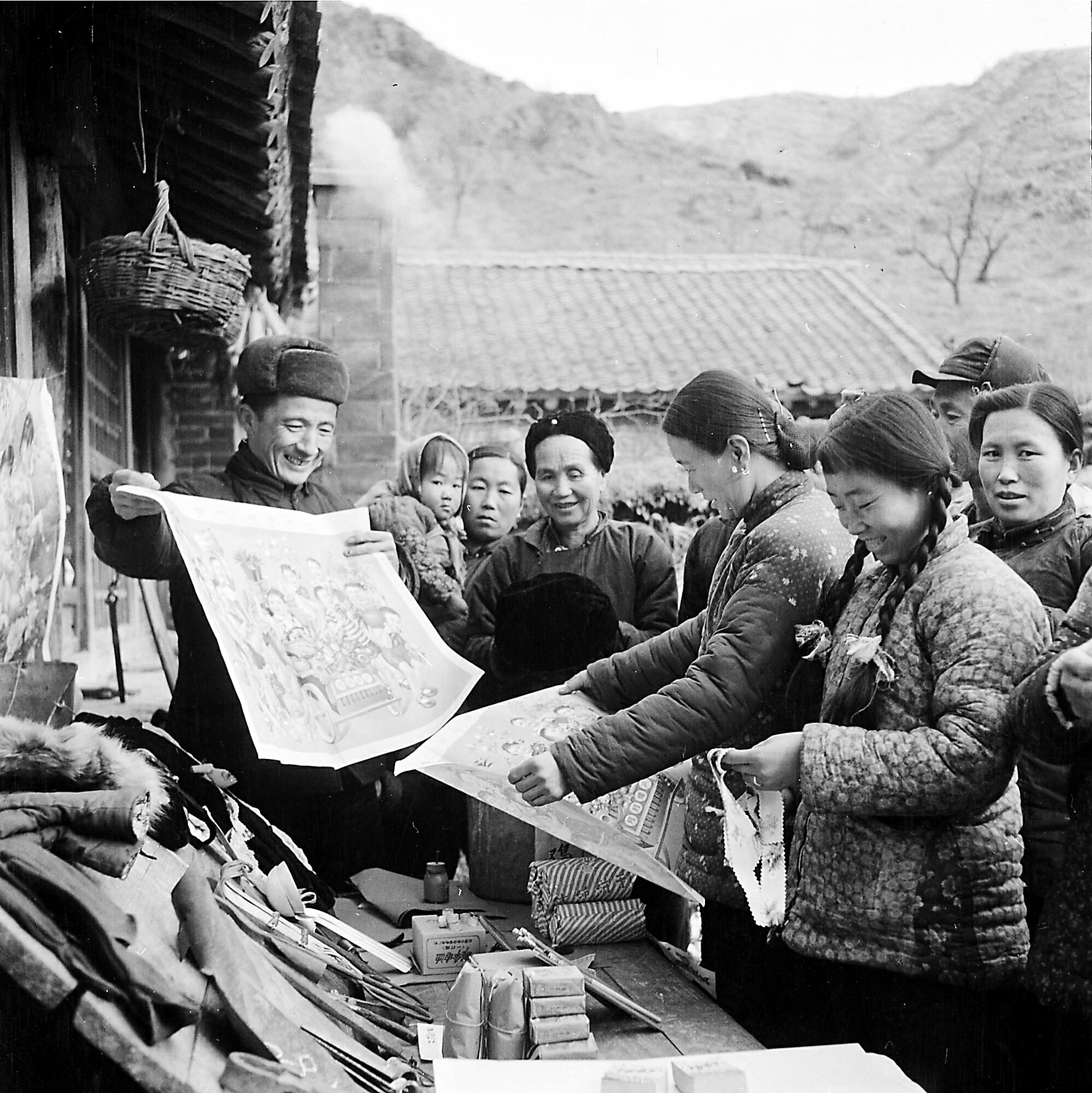 1962年12月1日,怀柔县琉璃庙公社的社员在选购年画。 王力加摄