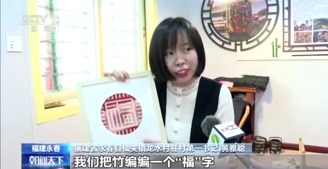 福建省永春县仙夹镇龙水村驻村第一书记 黄雅聪:我们把竹编编一个“福”字,做成一个装饰画,非常喜庆。