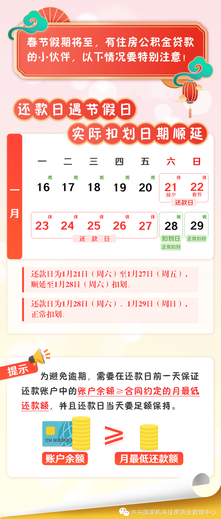 提醒!住房公积金贷款还款日遇节假日,实际扣划日期顺延