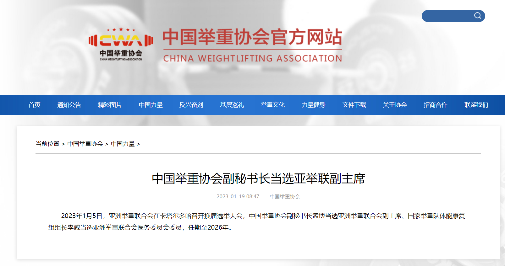 中国举重协会官网截图