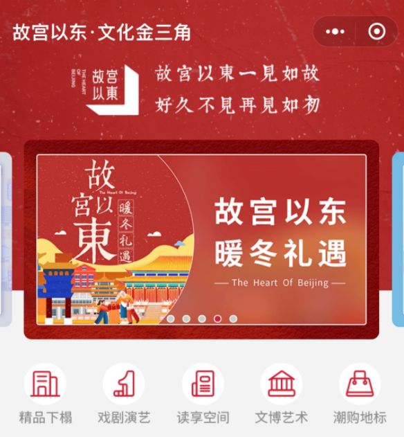 新春佳节来临之际,东城区结合“故宫以东·暖冬礼遇”文旅促消费活动,推出“故宫以东·文化金三角”小程序。