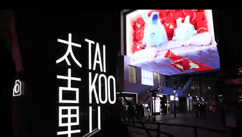 三里屯太古里南区的裸眼3D屏幕上,毛茸茸的小兔子和小老虎频频交手,一起向观众扑来,逼真的动画效果引得路人驻足观看。