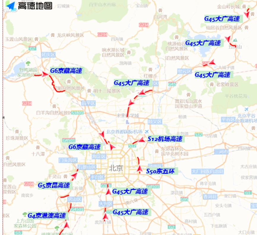 此外,怀柔、延庆、密云等地区将举办地区性民俗活动,郊区民宿预订较满,连接城区的京藏、京承、京港澳、京平等高速公路,民宿村落周边国道、市道及乡村道路车流量将增加。