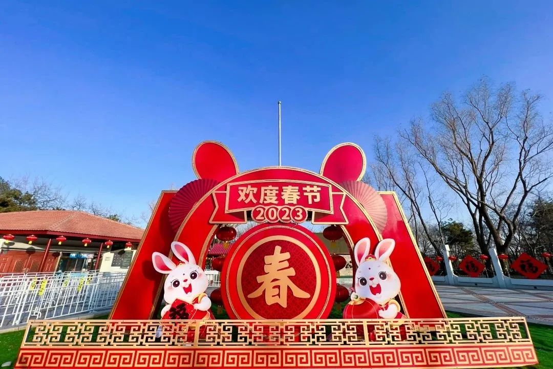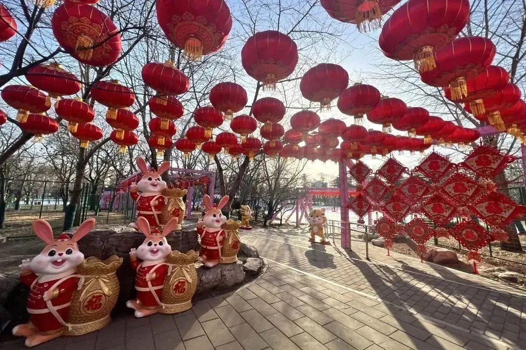 公园今年还在东门及樱花商店西侧新增了2组“玉兔”创意造型装饰,并将传统文化融入其中,为公园添加了灵动、幸福的元素;园内以“福满京城 春贺神州”为主题的100组道旗、4块展板景观布置与传统文化紧密结合,为市民游客勾勒出一幅美丽祥和,吉祥如意的画卷,营造温暖、愉悦的节日气氛。