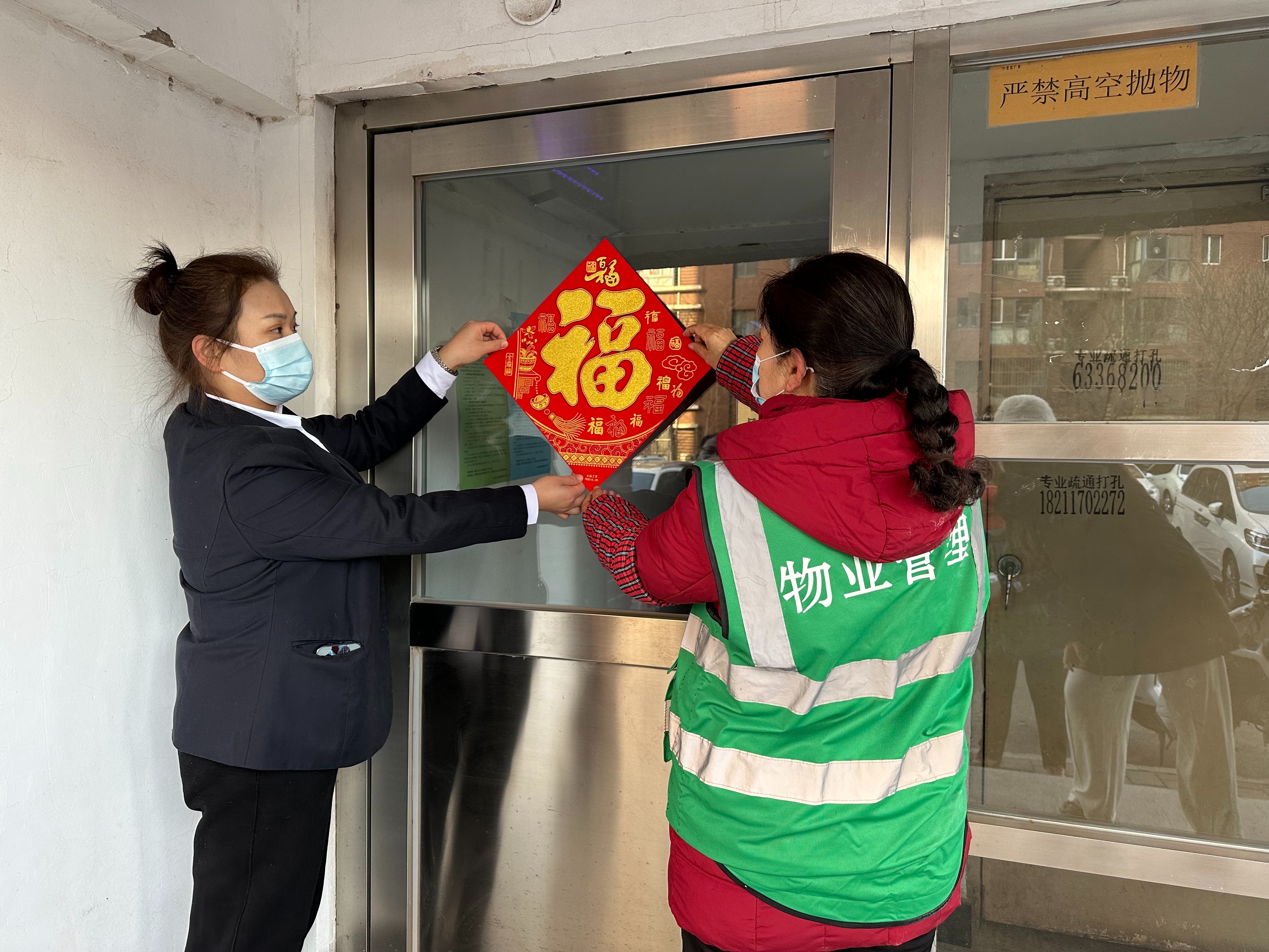 大年三十儿贴春联是春节的传统习俗,然而有些居民因为提前返乡、外出旅游或工作原因,无法在这一天回家张贴春联。“我们想到这一点,于是就采购了一批春联,并在居民群里发了通知,可以为有需求的居民代贴春联、送福到家,让他们讨个好彩头,有个好心情。还有一些老人年事已高,子女不在身边,张贴春联很不方便,我们也可以代贴。通知一发,好几户居民打来电话预约服务。”小区物业项目经理董伟说。