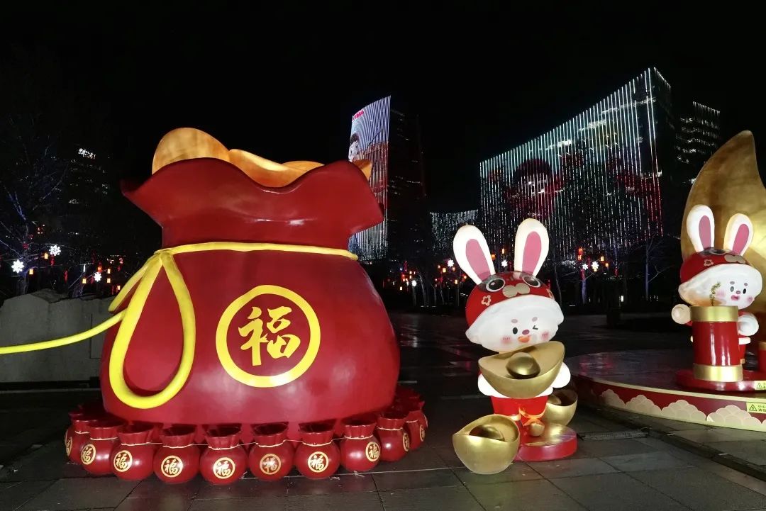 据悉,以“新春兔年”为主题的灯光秀时长约5分钟,通过瑞兔呈祥、兔年大吉、阖家团圆、玉兔迎春、欢天喜地过大年等内容,全景式勾勒出2023癸卯新年节日氛围及浓浓的中国年味,营造辞旧迎新的“仪式感”。