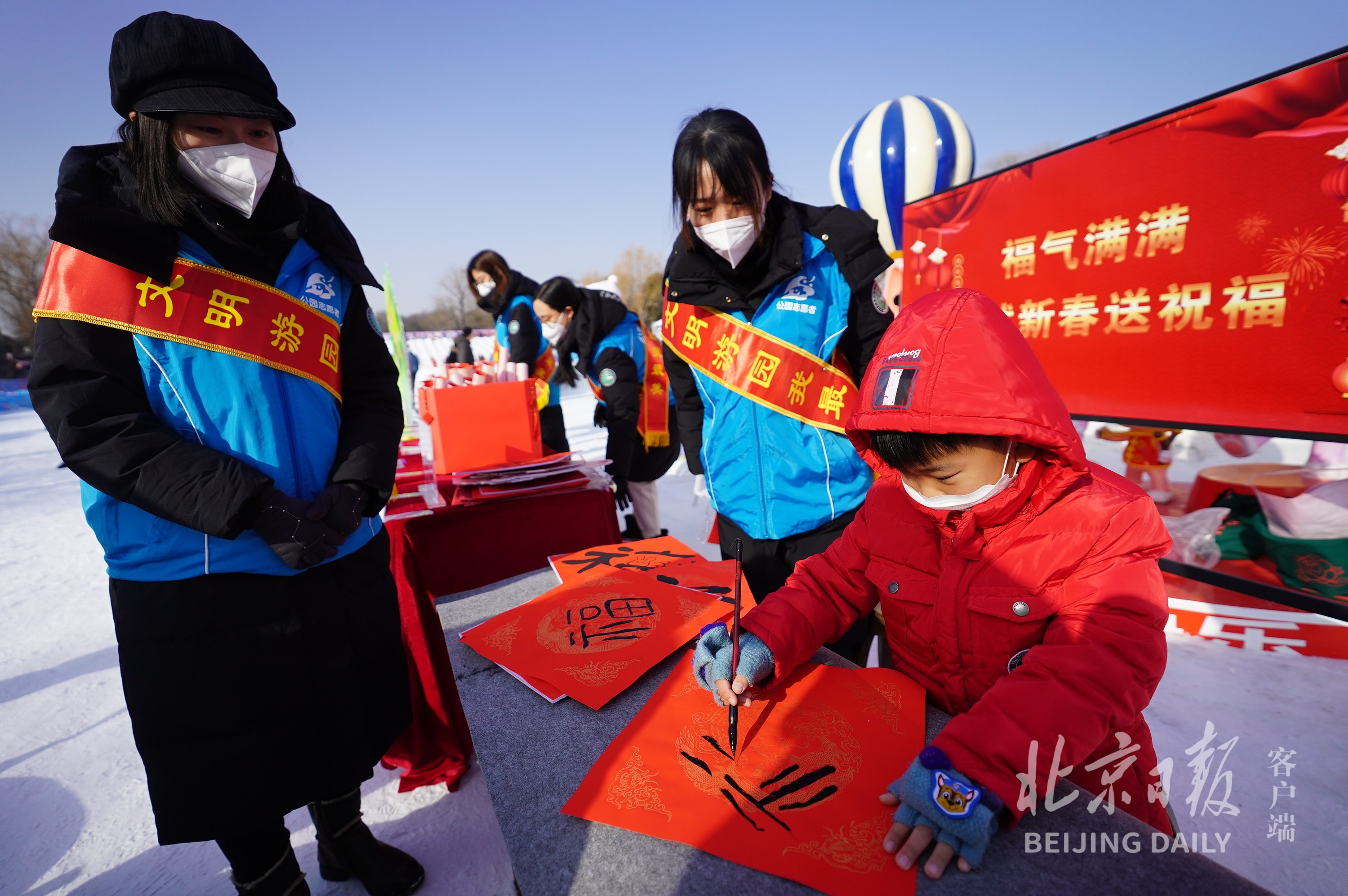 大年初一,一场“陶然‘福器’已备齐,喜迎新春接福气”主题活动在陶然亭公园冰雪嘉年华现场进行,公园邀请市民游客写下新春祝福及美好愿望,并为游客送上手写福字及中国结年味儿礼物,与广大市民游客一起过春节。