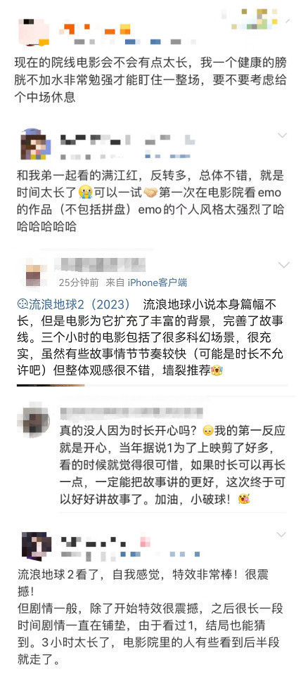 在社交平台上的讨论中,网友们对于“电影时长是否影响观影体验”这一话题有不同的观点。部分网友称,对于自己喜欢的影片,时间再长也会看得津津有味;也有观点表示,现在的院线电影会不会有点太长,不喝水才能撑完一场。