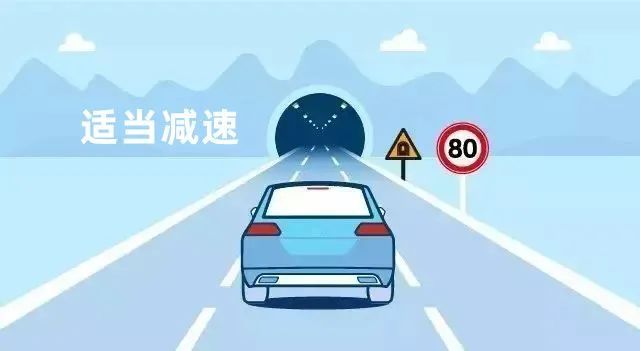 进入隧道前要适当减速,隧道内的车道通常会比隧道外的狭窄,而且光线偏暗,适当减速能让自己有更多时间判断隧道内的状况。