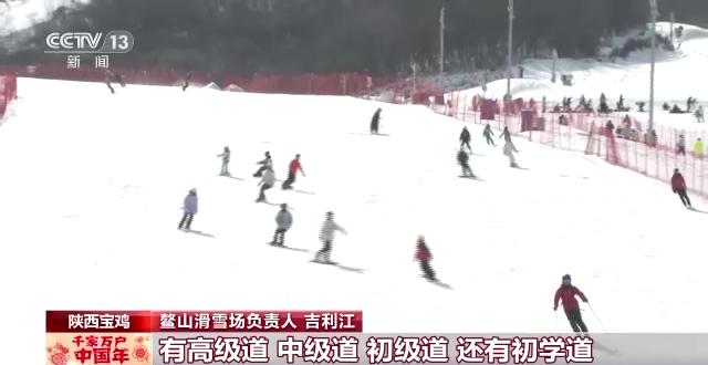 鳌山滑雪场负责人 吉利江:从腊月二十九开始,人流就大幅度增加,春节期间日均估计在两万人,目前开了18条雪道,有高级道、中级道、初级道,还有初学道,能够满足各个层次和水平的人在这里畅滑。
