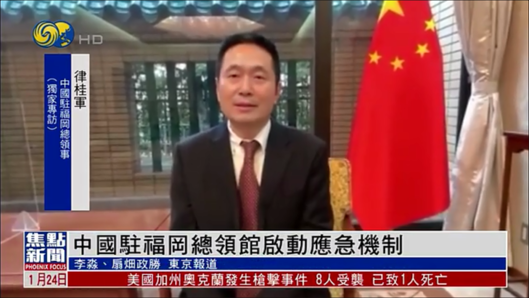 1月24日,巴拿马籍货轮“XINHAIZHOU2”号在冲绳县附近海域触礁遇险。当天,律桂军总领事就此接受凤凰卫视采访。