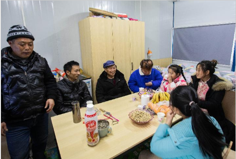 “来,坐下嗑瓜子、吃橘子。”记者来到“9·5”泸定地震得妥镇繁荣过渡安置点时,紫雅场村村民曲比尔西莫一家正围坐在电视机前团年。孩子们在一旁玩耍,安置房内布置简单却温馨。