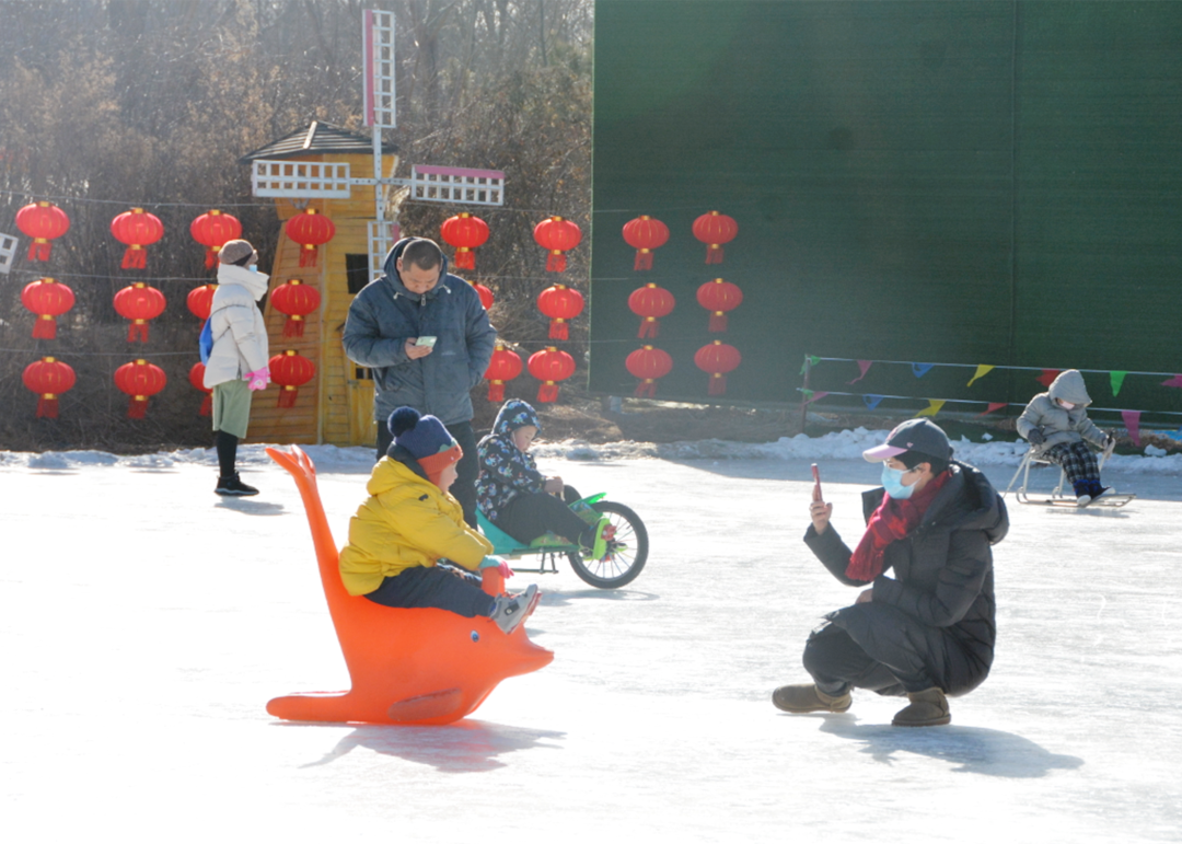 春节期间,北京国际鲜花港冰雪嘉年华里欢笑声不断,雪地托马斯、旋转飞碟、冰海豚、雪滑梯、雪地龙舟、雪地摩托车等十余种冰雪娱乐项目为市民带来一场冰雪盛宴。河北村民俗园举办“踏雪寻梅冰雪节”,雪山冲浪、雪地坦克、雪地飞碟、推雪机等传统雪上娱乐项目,让游客尽情享受冰雪乐趣。中粮·祥云小镇的室外光影冰场也十分具有吸引力,虽然温度在零下,但冰场上依然排着长队,小朋友们愉快地滑行,家长用手机记录着孩子玩耍的精彩瞬间。