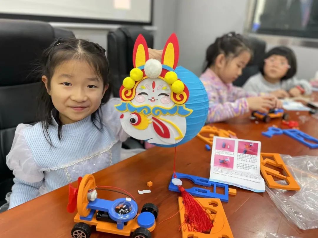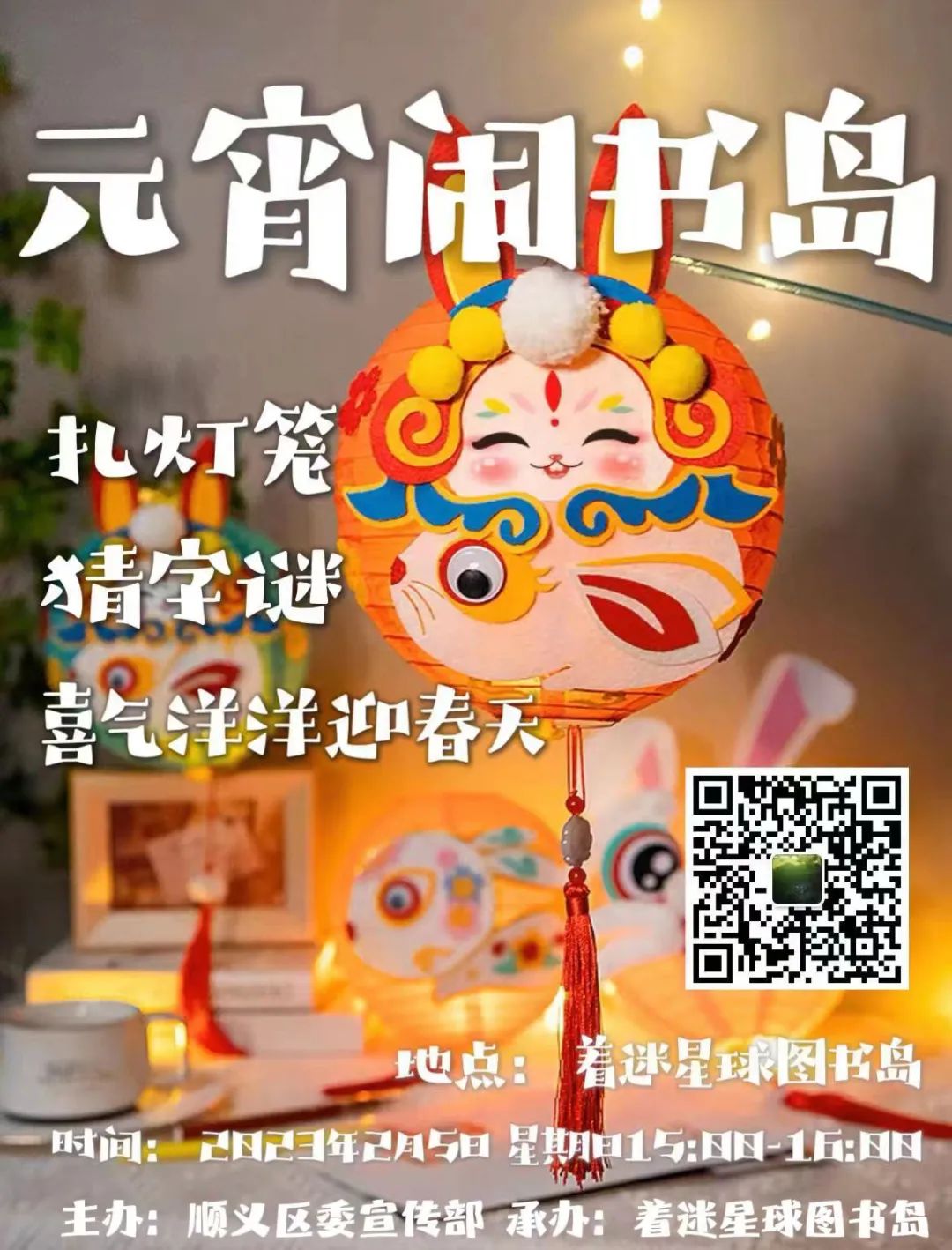着迷星球图书岛挂灯笼、贴“福”字、贺新春。