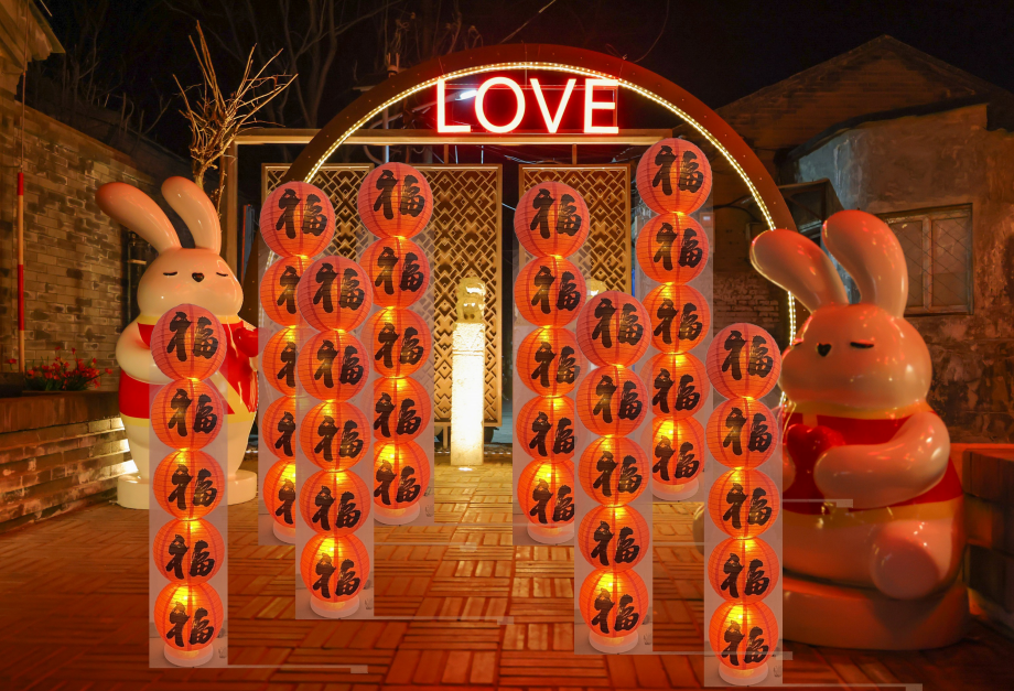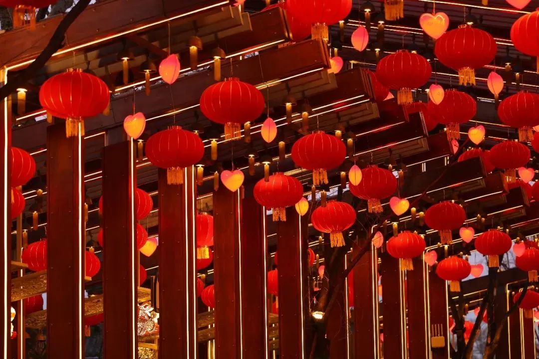 在Love爱心广场,打卡福字灯笼球,福气连升,好运到来。
