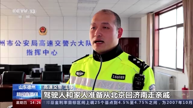高速交警 王臻:上前了解得知,驾驶人和家人准备从北京回济南走亲戚,车辆油路故障无法打火,无奈将车停在了应急车道。