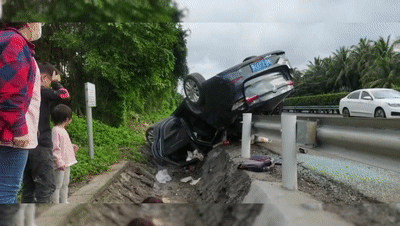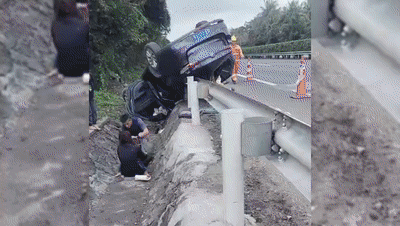 撞上高速路边排水沟
