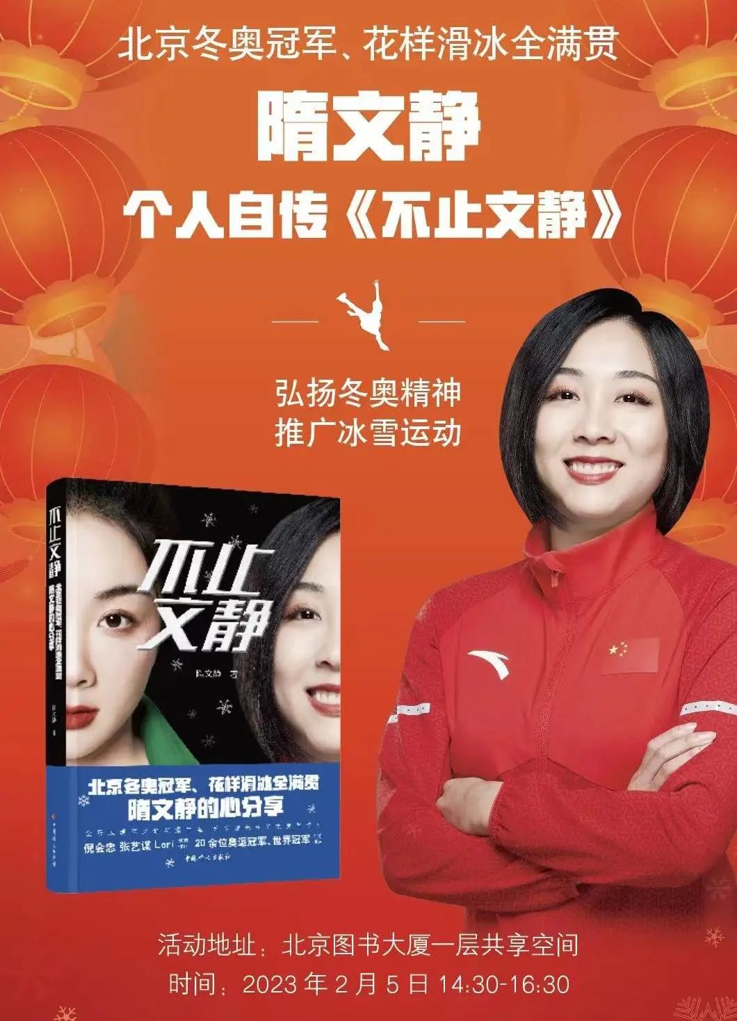 活动现场将邀请冬奥冠军隋文静到场进行访谈,为读者朋友介绍图书内容和相关公益,分享写书历程,并与粉丝互动、签售。