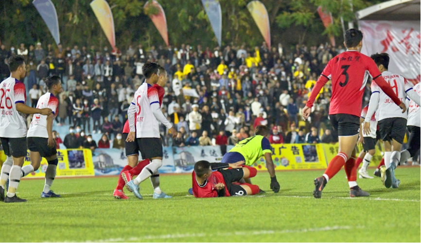 1月30日晚, “南宛杯”足球赛事的决赛打响,参赛的双方分别为来自中国的多加经贸公司队和缅甸籍的姐告队,让这场草根足球的决赛更是平添了“国际”色彩。场上队员们你争我抢,对抗激烈,球场周边看台上挤满了人,就连场边的跑道上也被里三层外三层围个水泄不通。随着赛场上的球起球落,现场加油呐喊声源源不断。“很久没观看到这么紧张激烈的足球比赛了,陇川足球的火热氛围又回来啦。”当晚,陇川周边县市的瑞丽、盈江等县市球迷纷纷包车到场观赛,欢呼声浪一阵高过一阵,在场所有人都为这久违的足球氛围所感染。
