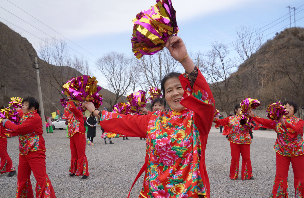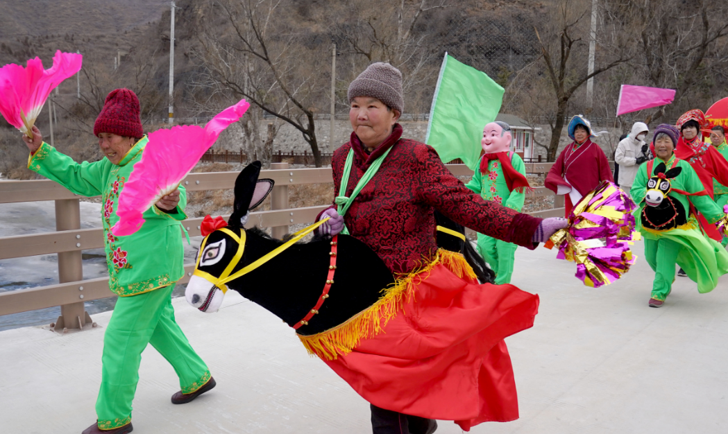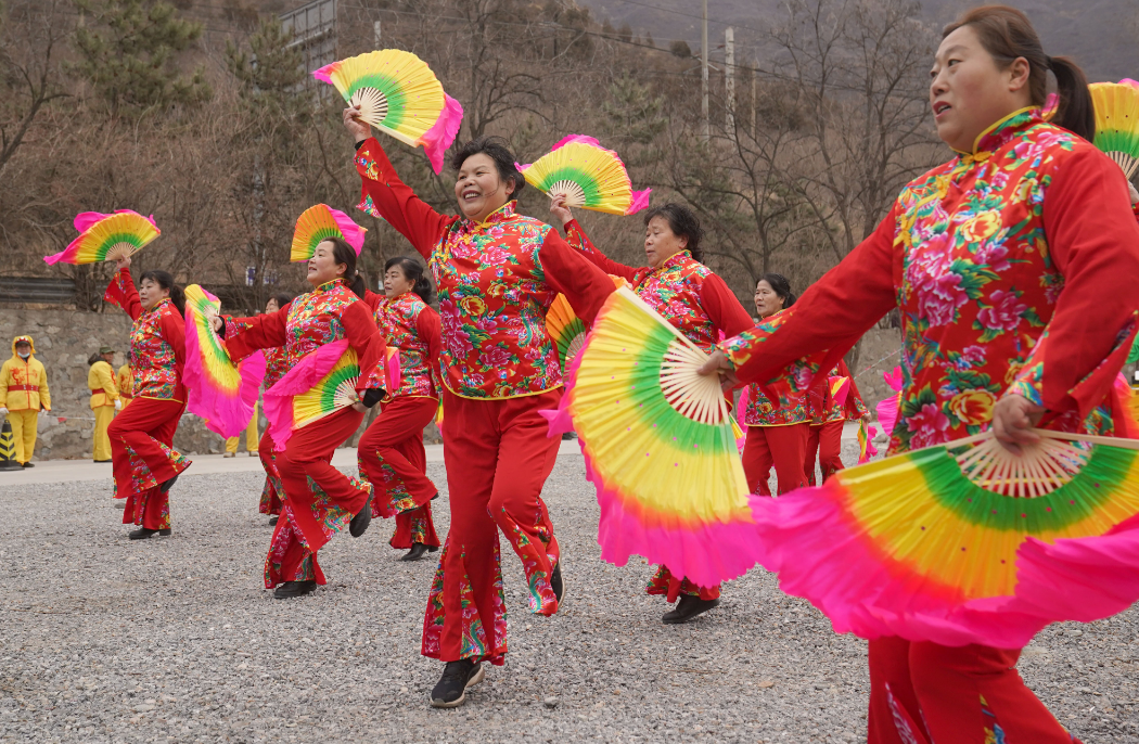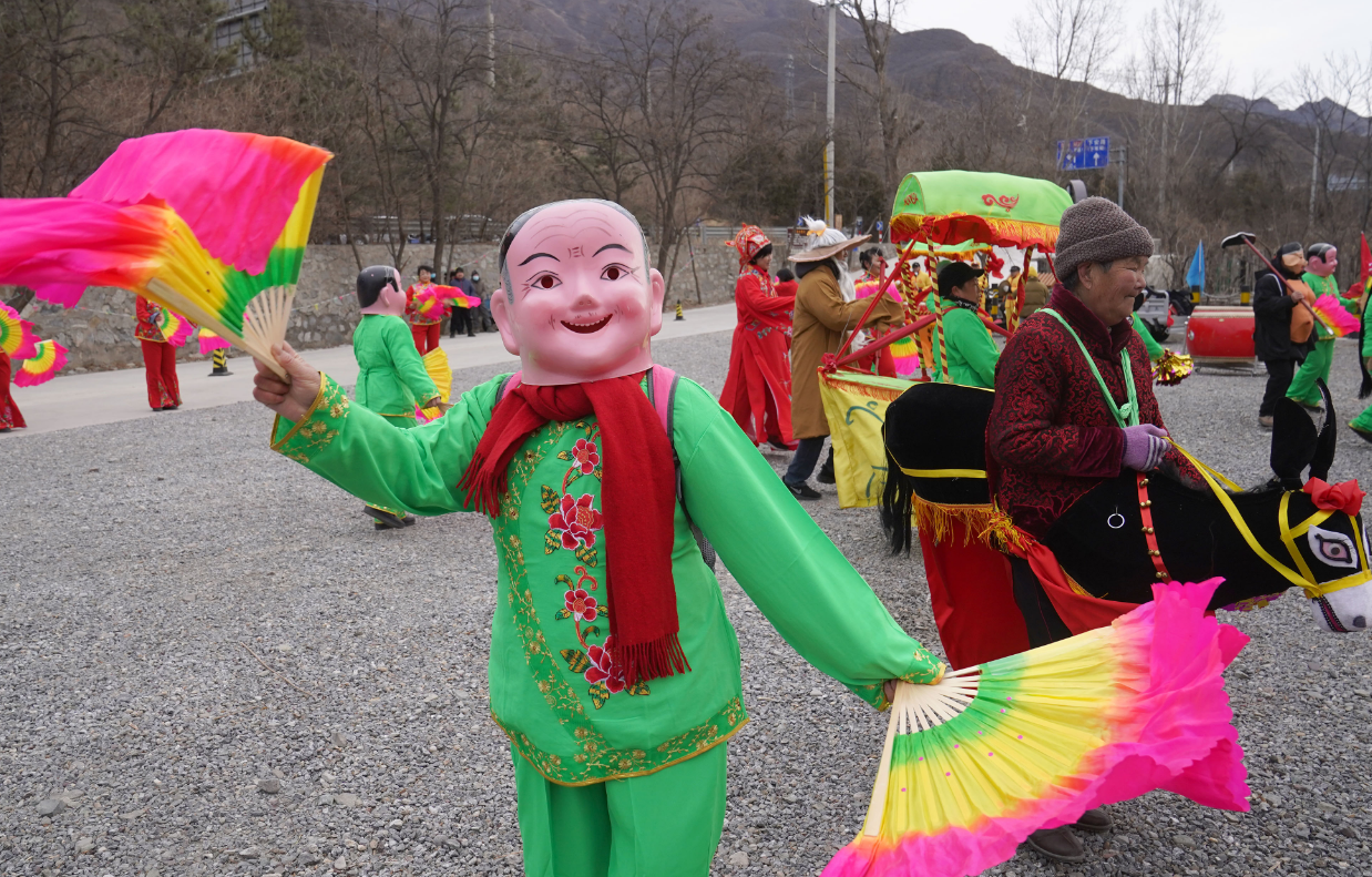 2月5日上午,门头沟区王平镇清凉界景区举办正月十五传统民俗小车会。一大早,景区内锣鼓喧天,安家庄村村民们敲起威风锣鼓,扭起大秧歌,表演传统民俗小车会欢迎远道的客人。