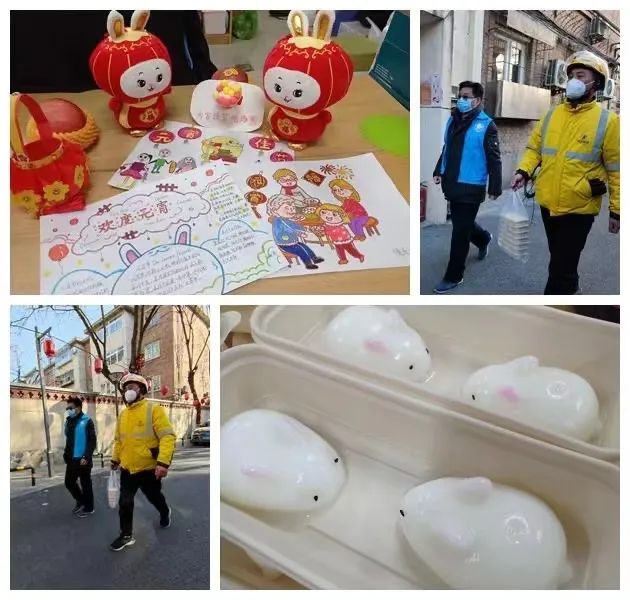 带着街道潘庄社区精心制作的Q弹“萌兔”布丁和辖区青少年制作的节日手工,“甘小美”的“黄骑士”与社区志愿者们逐一前往老人家中,为他们送去节日的祝福。