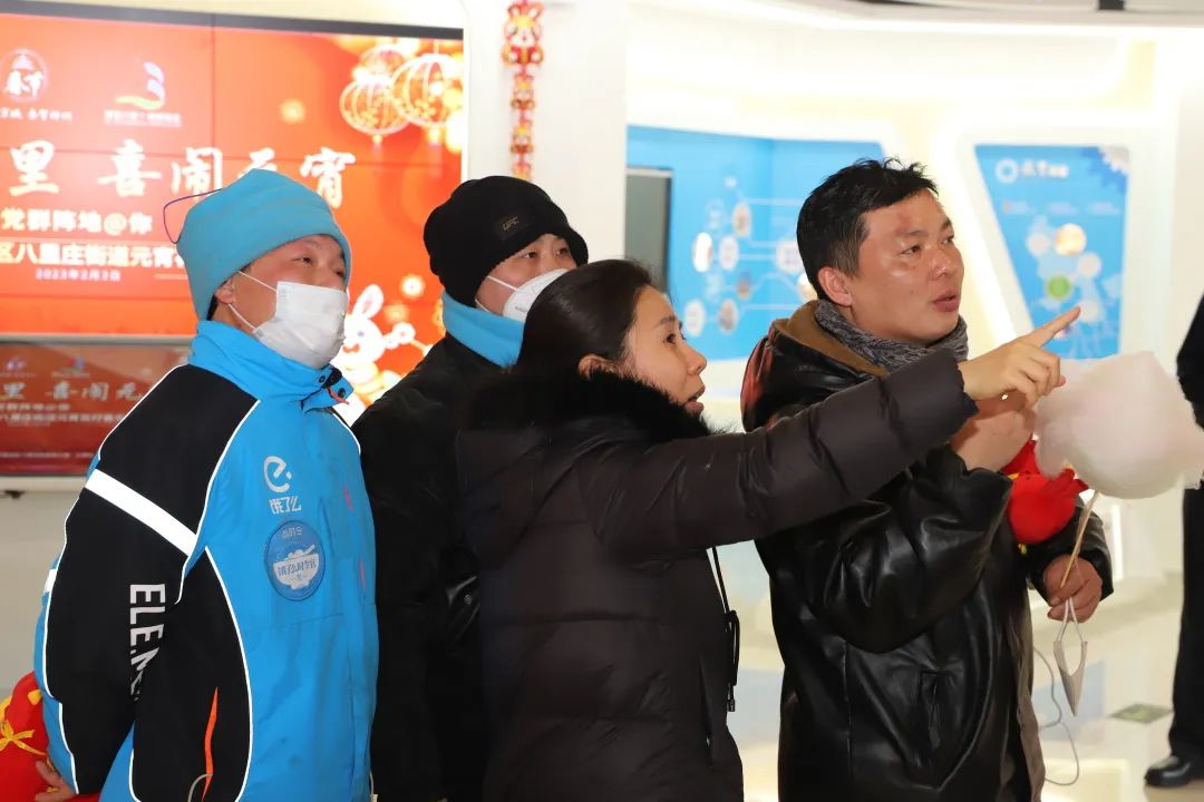 在八里庄街道党群文化中心,小哥们与地区居民一同猜灯谜、兔年打卡合影,领棉花糖、糖葫芦、吃元宵,感受党群阵地的温馨氛围,热热闹闹共度佳节。