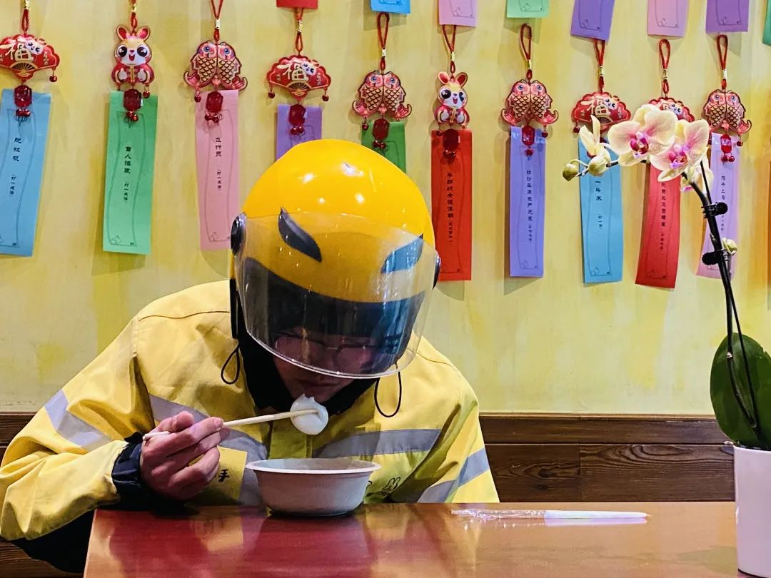 猜完灯谜,再吃上一碗碗热气腾腾、满载祝福的元宵,让远离家乡的小哥倍感温暖。活动现场商务楼宇工作人员还向外卖小哥进一步宣传介绍了“温馨驿家服务站”的服务内容,欢迎大家随时“回家”休息、充电。