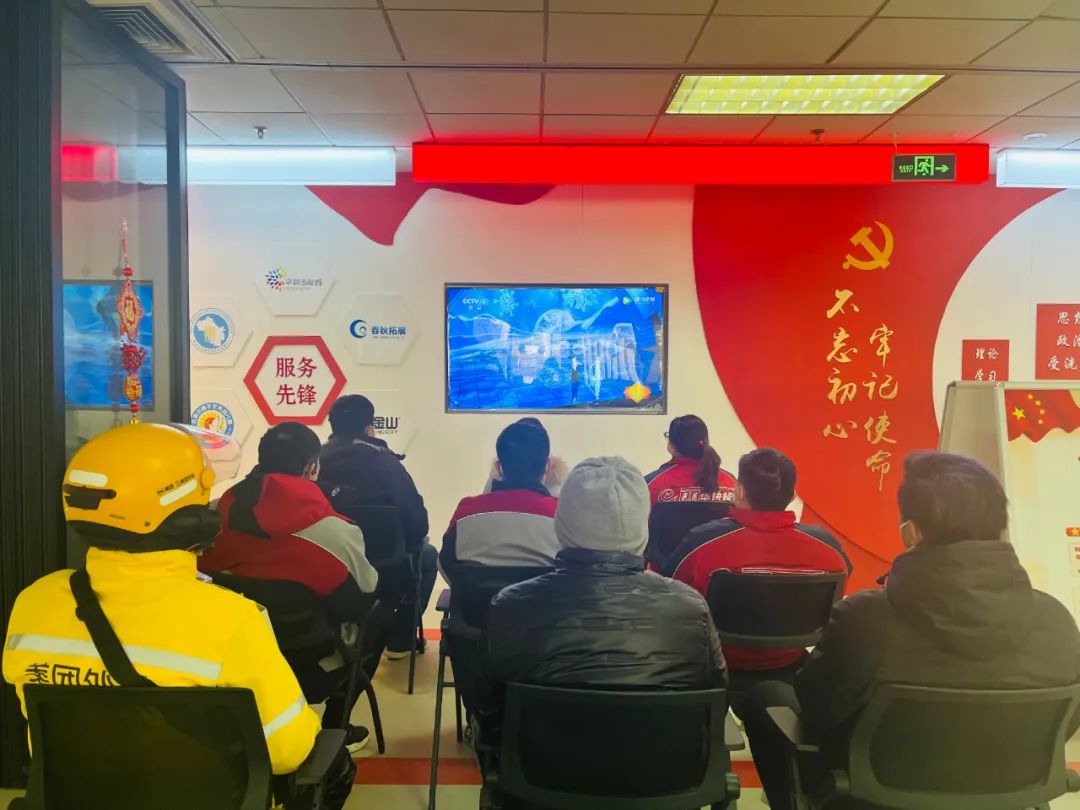 在外文大厦商务楼宇党群服务中心,工作人员带领小哥“认认门”,参观新装修完的党群服务中心,介绍了小哥休息、充电、饮水等服务区域,并为小哥送上了保暖手套等小礼物。