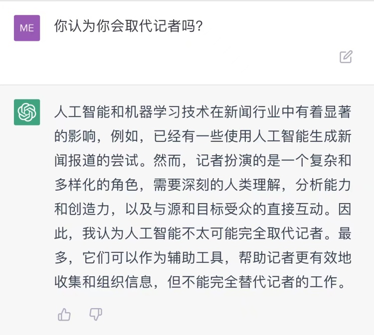 看到ChatGPT的回答,记者的心稍微放下了一些。