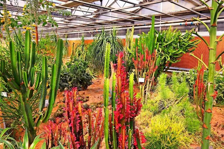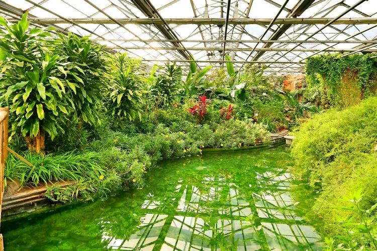 室内包含热带植物馆、沙漠植物馆、精品花卉厅、茗赏百花厅、蔬菜瓜果园、花卉科研实验室等主题观赏温室,是远近市民一年四季赏花游玩、亲近自然的不二之选。