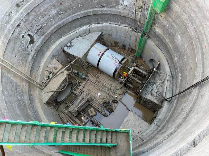 班前讲话结束后,工人们整理安全帽,戴上手套,顺楼梯走下竖井开始作业。13标段主要负责在埋深约20米的地下进行管道铺设。由于工程要穿过沙层、富水层,施工条件较为复杂,工人们需要仔细检查、清理已铺设好的管道,同时对各项设备进行调试,确保施工高效安全。