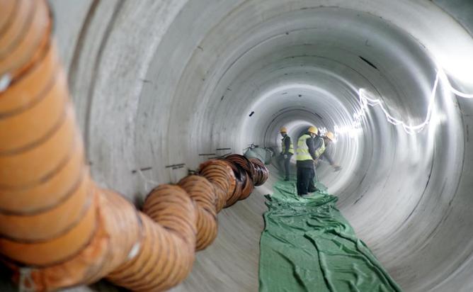 图为工人在北京南水北调配套工程大兴支线新机场水厂连接线的地下管线中施工。新华社记者李欣 摄
