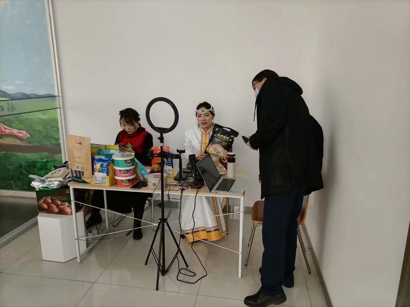 粉丝量稳定住了,直播带货也就有了受众。王宁一边拍摄短视频吸引粉丝,一边自己购买专业设备练习直播带货,同时采取多种形式挖掘旗内电商人才,邀请后旗明星成立了直播代言团队。