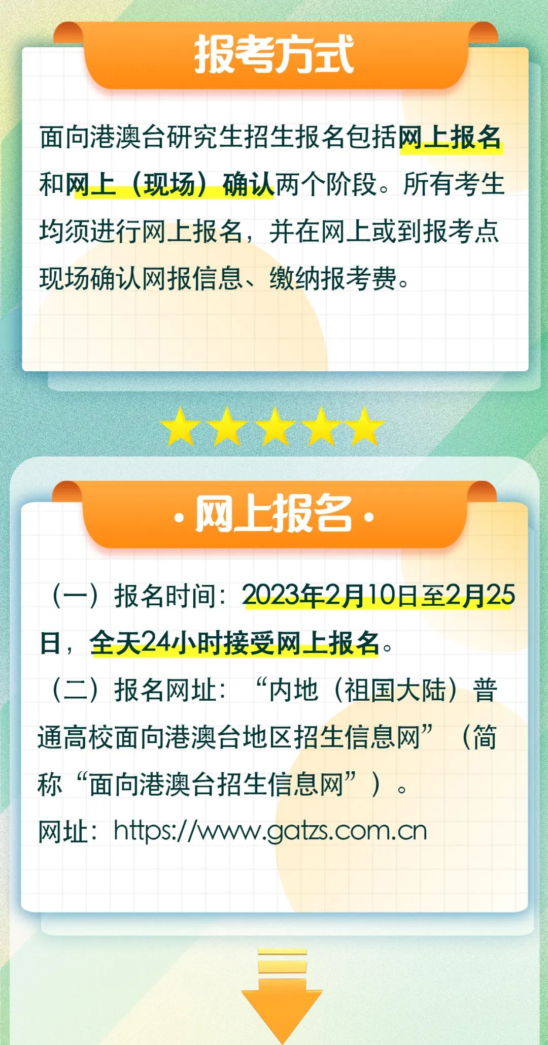 2.考生报名时只能填报一个招生单位的一个专业。相关报考招生单位的招生简章、招生信息及相关要求可在“面向港澳台招生信息网”或招生单位网站查询。