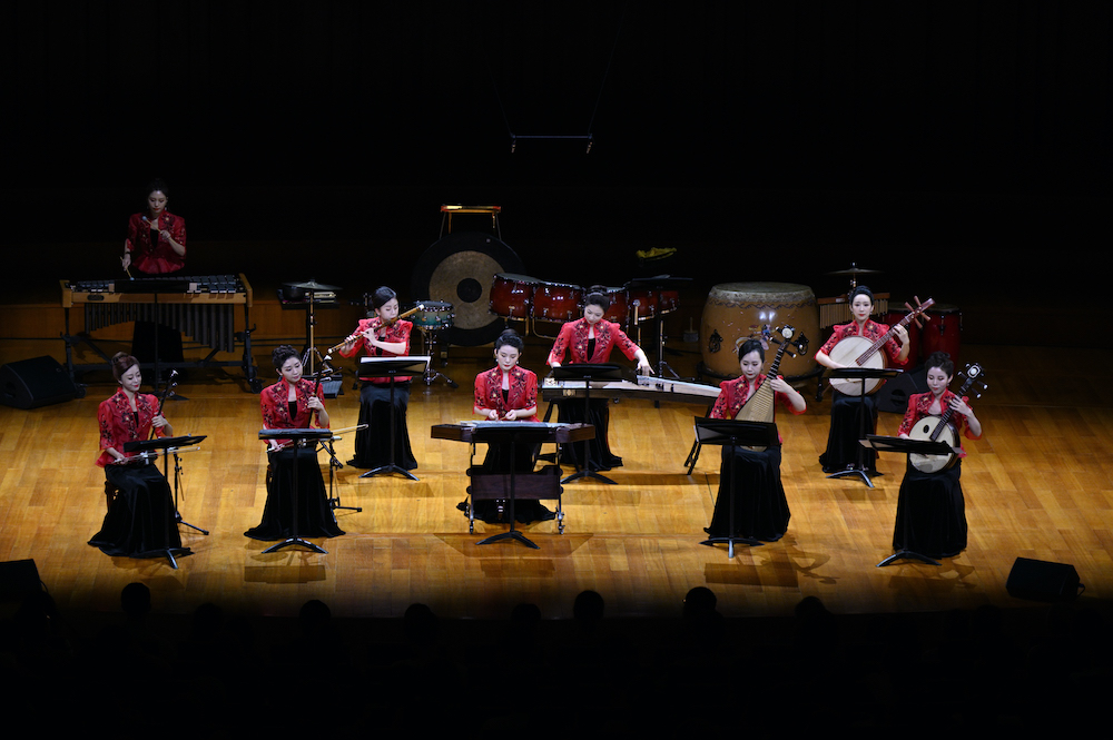 光影朦胧的灯下,多位身穿汉服的姑娘信手拨弦,吹笛击鼓,衣香鬓影仿佛一卷流动的古画,引人遐想古人曾经的诗情意趣。这支来自中央民族乐团的女子室内乐组合有一个同样美丽的名字,“俪人行”,2月12日,她们与乐团的另一支男子室内乐组合“青衫渡”共同登台国家大剧院,为观众们带来了一个古色古香的赏乐之夜。