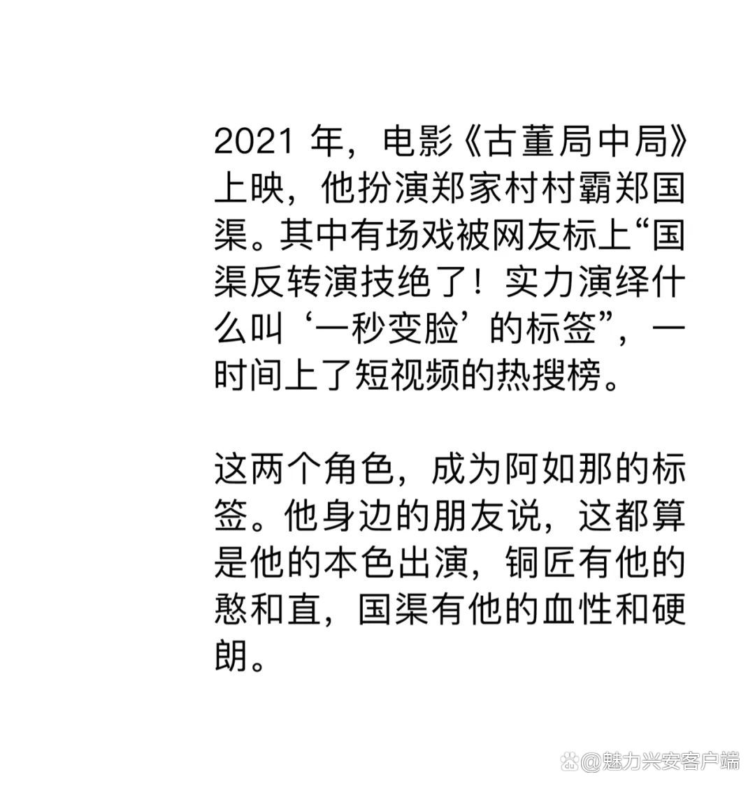 《狂飙》出圈的男演员阿如那来自兴安盟